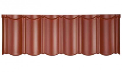 Черепиця Metrotile Viksen Victorian Red від бельгійського бренду створена за мотивами старовинних будинків вікінгів. Колекція має плоску поверхню, яка при монтажі покрівлі створює відчуття цілісного полотна. Дизайнери вибрали натуральний червоний відтінок з сірими плямами, що надає ефект натуральності. Забарвлення відбувається термічним способом, що робить колір стійким. В якості основи профілю використовується сталевий лист, який додає металочерепиці міцності і жорсткості. Антикорозійне покриття і акриловий шар захищають метал від руйнування. Поверхня вкрита кам'яною крихтою і прозорою глазур'ю, яка виконує функцію самоочищення від пилу. При встановленні телевізора складаються в замок, який захищає будинок від протікання. Невелика вага дозволяє швидко звести дах або реконструювати стару.